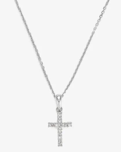 Ciondolo a croce in oro bianco 0,02 ct con mini diamanti
