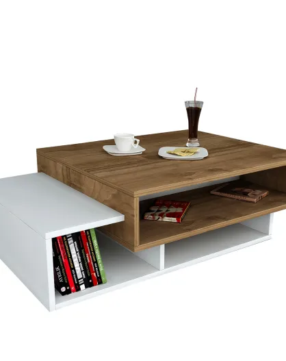 Tavolino da caffè con linguetta bianco/noce - 105x32x60 cm