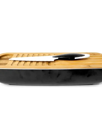 Cestino e tagliere con coltello nero - 40x12,5x9,5 cm