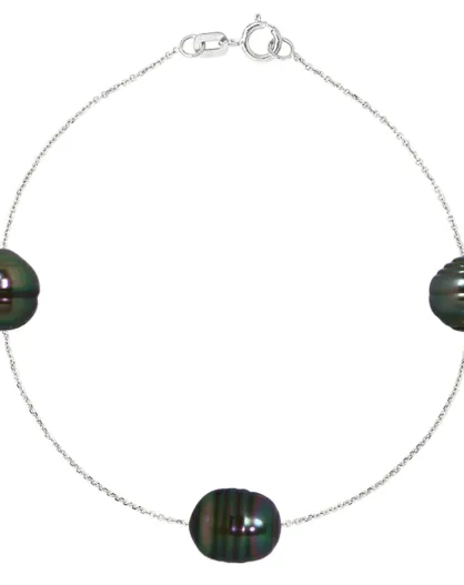 Bracciale Trilogy in oro bianco e perle di Tahiti nere