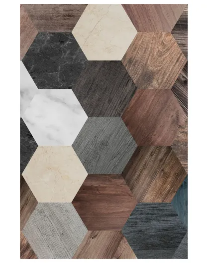 Tappeto in vinile esagonale in legno/marmo - 200x266 cm