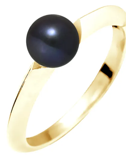 Anello a bracciale in oro giallo con perla d'acqua dolce nera