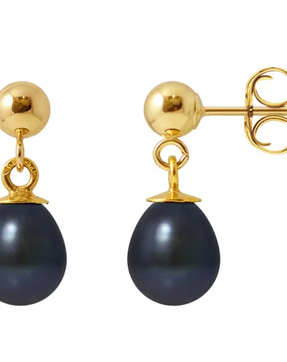 Orecchini in oro giallo con perle d'acqua dolce nere
