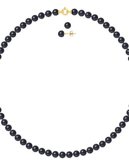 Set collana + orecchini in oro giallo e nero con perle d'acqua dolce