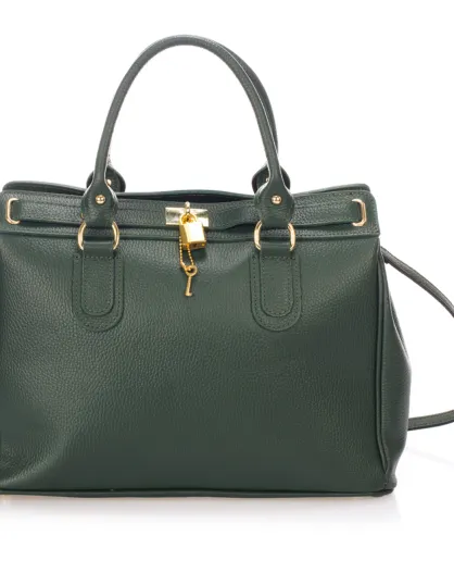 Borsa Coralie in pelle verde - 36x28x18 cm