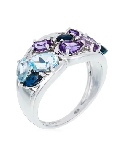 Anello Country con diamante 0,10 ct, zaffiri 0,45 ct, topazi 0,45 ct, topazi 0,78 ct e ametiste in oro bianco 0,92 ct