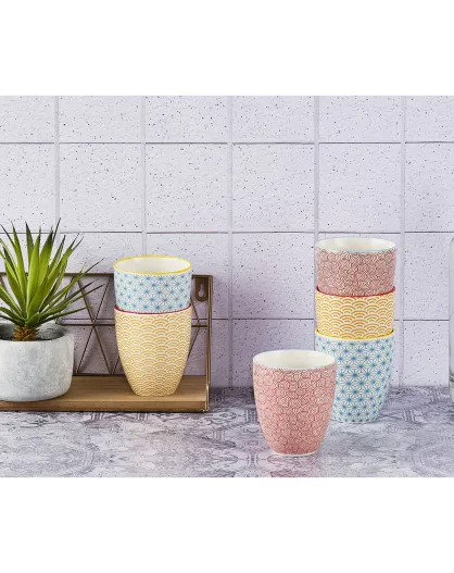 6 tazze Pattern Colore azzurro/rosso/giallo - 30 cl