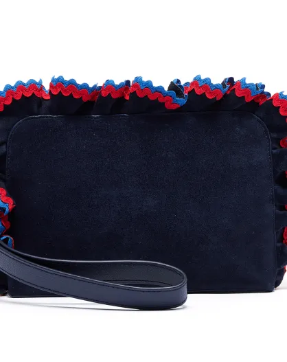 Pochette in pelle di velluto blu - 27,5x17x3,5 cm