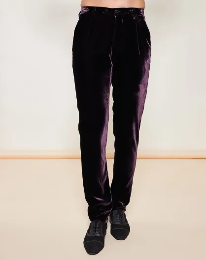 Pantaloni dritti in velluto liscio con comode pieghe viola