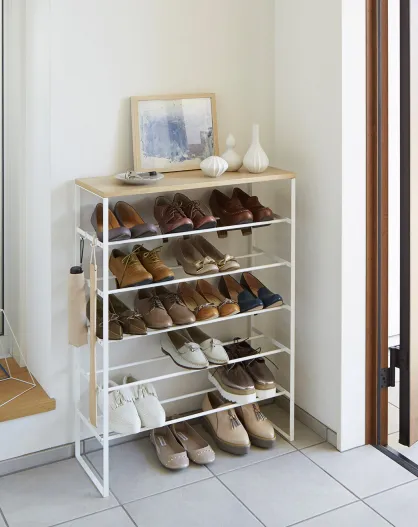 Scarpiera con supporto a 6 ripiani bianca - 66x25x87 cm