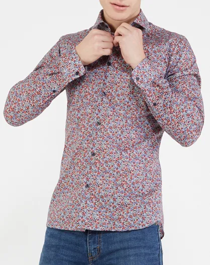 Camicia slim fit con stampa Liberty rossa/blu