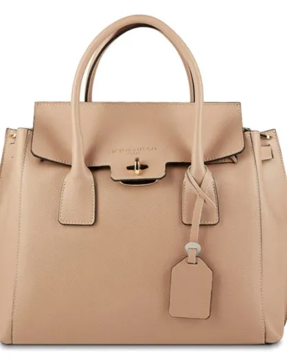 Borsa a mano Jane in pelle beige - 36x35x24 cm
