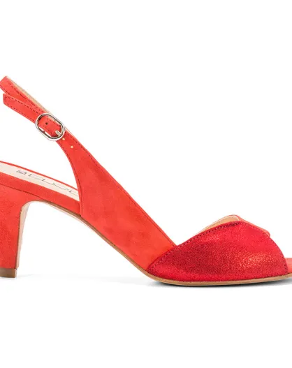 Slingback Itsi in pelle velluto color corallo - tacco 5,5 cm