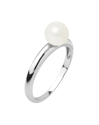 Anello in oro bianco con perla d'acqua dolce bianca naturale