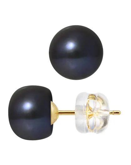 Orecchini in oro giallo con perle d'acqua dolce Bottoni neri