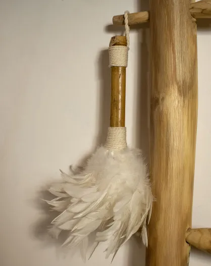 Spolverino decorativo in bambù e piume Kemoa bambù/bianco - 15x15x35 cm