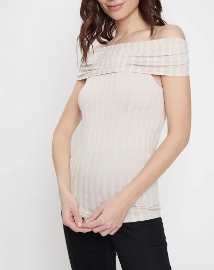 Top Stripes con spalle scoperte beige/bianco