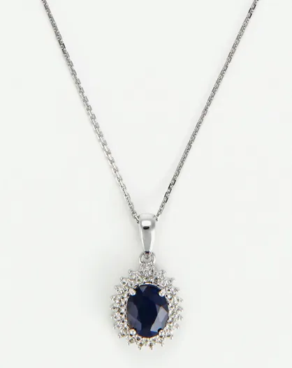Ciondolo in oro bianco con diamante blu lacrima da 0,05 ct e zaffiro da 0,57 ct