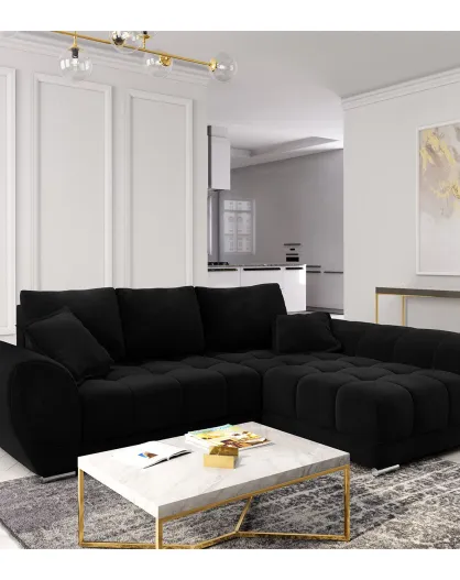 Divano angolare destro trasformabile in velluto con contenitore a nuvola nero - 285x192x92 cm