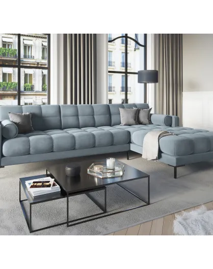 Divano angolare destro in velluto blu Bali - 293x185x78cm