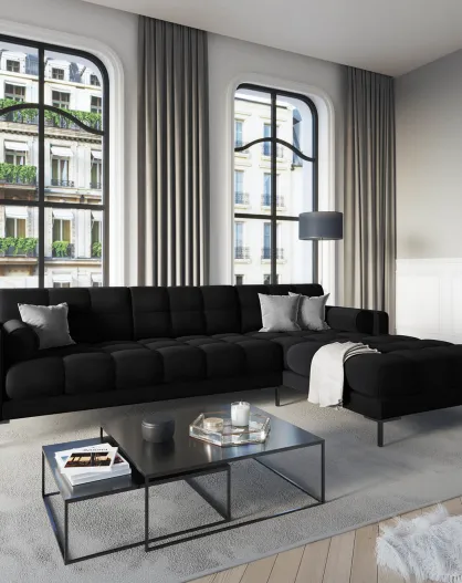 Divano angolare destro Bali Velvet nero - 293x185x78 cm