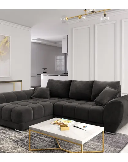 Divano angolare sinistro Velours convertibile con contenitore Marrone scuro Cloud - 285x192x92 cm