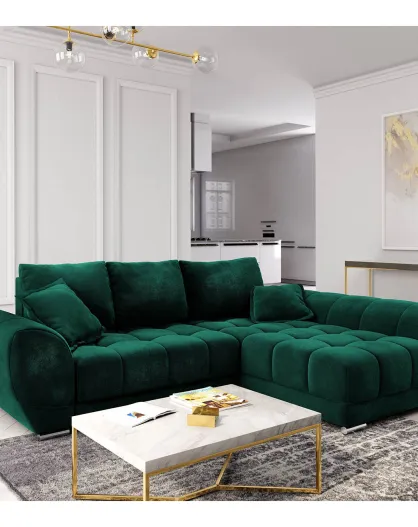 Divano angolare destro trasformabile in velluto con contenitore Nuage contenitore verde bottiglia - 285x192x92 cm