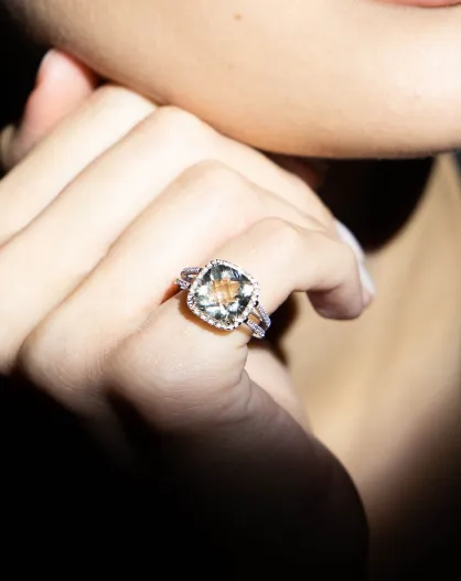 Anello con diamante divino 0,1 ct, ametista verde, 3,75 ct, oro bianco