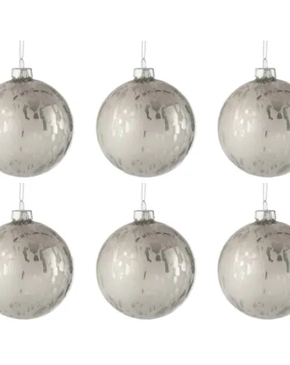 6 palline di Natale con superficie glitterata argentata - D.7,7 cm