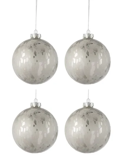 4 palline di Natale con superficie glitterata argentata - D.9,6 cm