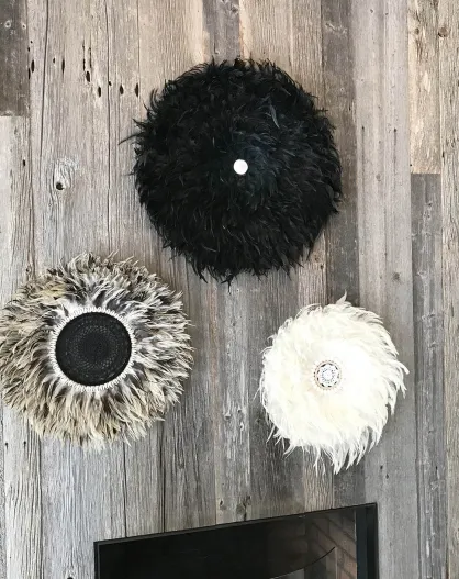 Decorazione in piume di jujuhat naturali e conchiglie di kapau naturali - D.50 cm