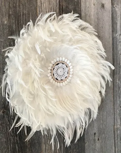 Decorazione in piuma e conchiglia bianca Kapau - D.40 cm