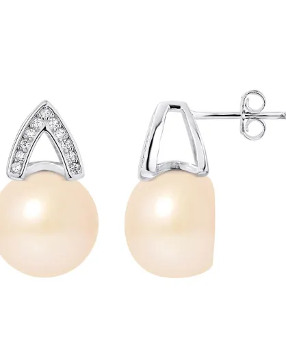 Orecchini in argento, zirconi e perle d'acqua dolce a pera rosa naturale