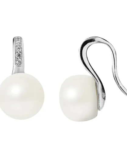 Orecchini Virgule in argento, zirconi e perle d'acqua dolce con bottoni bianchi naturali