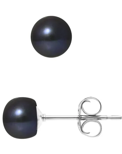 Orecchini a lobo in argento con perle d'acqua dolce con bottoni neri Ø 6-7 mm
