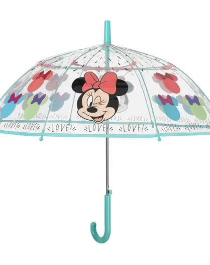 Ombrello a campana Disney Minnie per bambine - Resistente al vento trasparente/turchese
