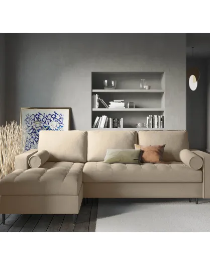 Divano angolare sinistro convertibile in velluto beige a 5 posti Yanis - 280x170x80 cm