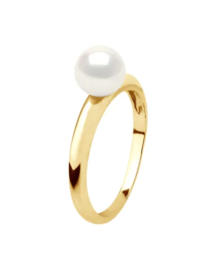 Anello in oro giallo e perla d'acqua dolce rotonda bianca naturale