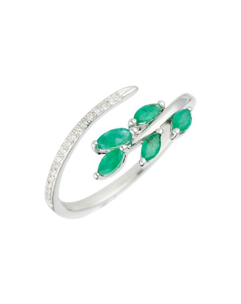 Anello Entrelacs in oro bianco, diamanti 0,05 ct e smeraldi 0,49 ct