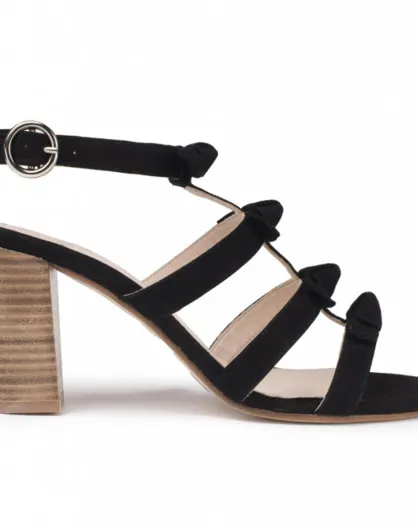 Sandali Fiorella in pelle nera in velluto - tacco 7 cm