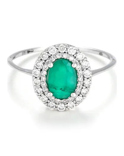 Anello in oro bianco con diamante Andaman da 0,27 ct e smeraldo da 1,06 ct