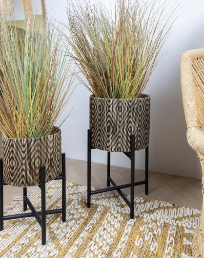 Grande fioriera nera/beige su gambe - D.33x52 cm