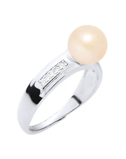 Bracciale regolabile in argento, zirconi e perla d'acqua dolce rotonda rosa naturale