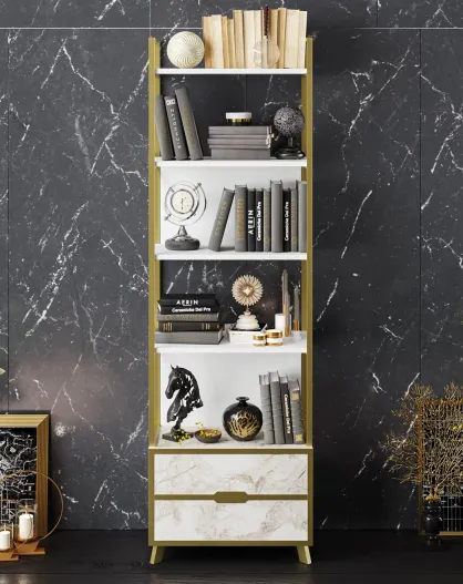 Libreria pieghevole bianca/oro - 60x174x22 cm