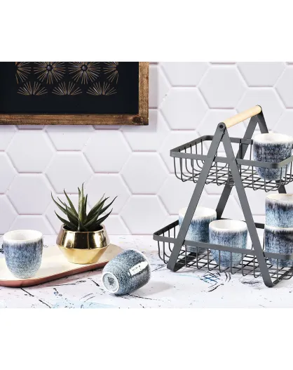 6 bicchieri Cosmos blu/bianchi perlati - 15 cl