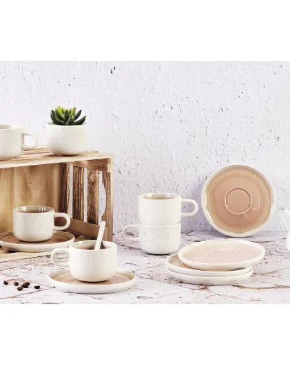 6 bicchieri di ossigeno con piattino rosa cipria/beige - 20 cl