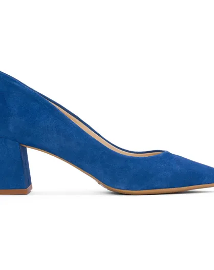 Décolleté June in pelle vellutata blu - tacco 6,5 cm