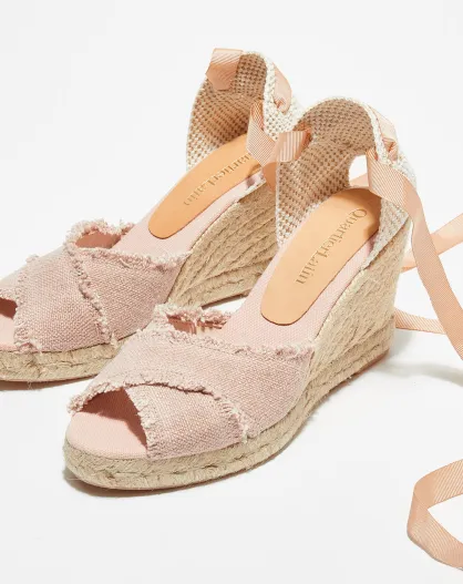 Sandali con zeppa in rafia rosa chiaro
