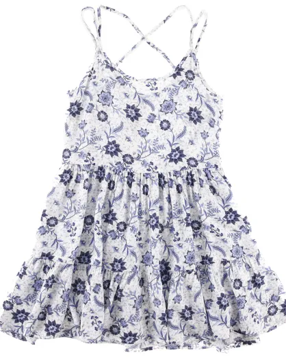 Abito in salice con spalline floreali blu/bianche