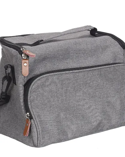 Borsa porta pranzo grigia con zip grigio/nero/cammello - 28x20x20 cm